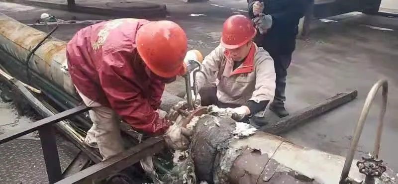 一把雨伞下,3名员工正紧张抢修流量计,这是1月17日发生天壕新能源公司地面烟道气过热器出口蒸汽管道边的一幕。